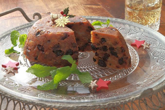Christmas pudding is like a steamed cake made by kneading dried fruits and brandy into the dough, which is a traditional food for Christmas in England.
