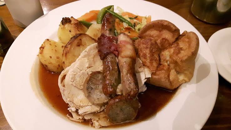 The number three food in Britain is Sunday roast. Sunday roast is considered a traditional food in Britain. As the name suggests, I eat it on Sunday. It is said be “a family meal for lunch on Sunday.” It is a colorful and hearty food with roasted meat and vegetables such as potatos, Yorkshire pudding, carrots, and green peas. British people can easily eat it at the Pub.